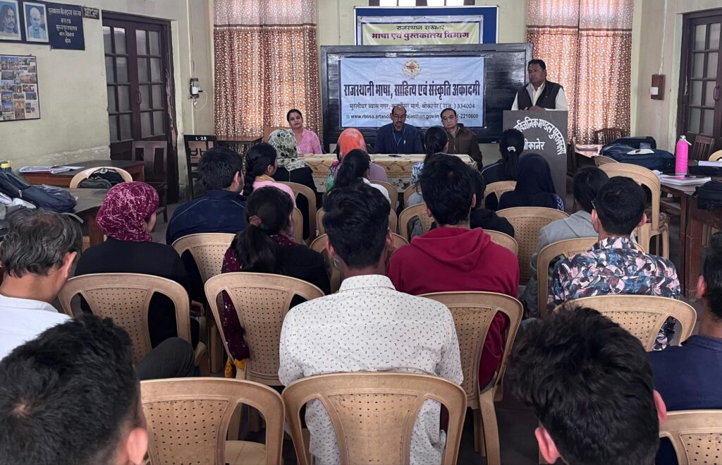 बीकानेर, 20 फरवरी। विश्व मातृभाषा दिवस की पूर्व संध्या पर राजस्थानी भाषा, साहित्य एवं संस्कृति अकादमी तथा राजकीय सार्वजनिक मंडल पुस्तकालय के संयुक्त तत्त्वावधान में शुक्रवार को पुस्तकालय सभागार में ‘मायड़ भासा री महिमा‘ विषयक व्याख्यान कार्यक्रम आयोजित किया गया। इस अवसर पर उपस्थित युवाओं को मायड़ भाषा का महत्त्व बताते हुए राजस्थानी लिखने-बोलने हेतु प्रेरित-प्रोत्साहित किया गया।