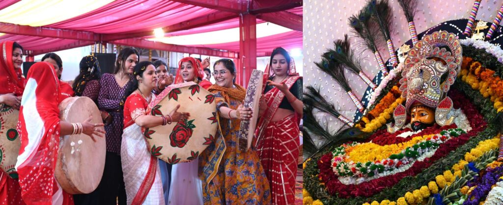 फतेहपुर शेखावाटी से पधारे कलाकारों ने राजस्थानी वाद्य चंग पर धमाल मचाते हुए फागोत्सव की परंपरा को जीवंत कर दिया। चंग की थाप पर महिला और पुरुष श्रद्धालु नृत्य में झूम उठे और पूरा वातावरण “श्याम नाम” से गूंजायमान हो गया।
