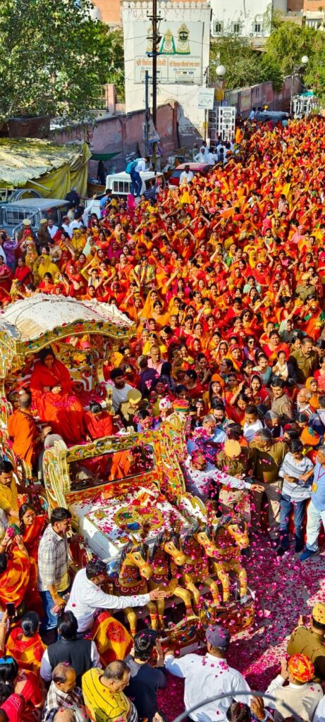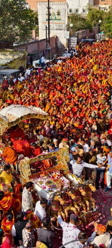 बीकानेर साध्वी ऋतंभरा बीकानेर में तेलीवाड़ा से कलश यात्रा में शामिल हुई। सनातन धर्म रक्षा समिति की ओर से आज 21 फरवरी को कलश यात्रा लक्ष्मीनाथ मंदिर से शुरू होकर घाटी वाले भैरूं के आगे से होते हुए चूड़ी बाजार, सुराणों का मोहल्ला, आचार्यों का चौक, मरूनायक चौक, मोहता चौक, तेलीवाड़ा, दाऊजी रोड, रामपुरिया कालेज के आगे से आगे, जोशीवाडा, कोटगेट के होते हुए धुनीनाथ मठ पंच मंदिर पहुंची। साध्वी ऋतंभरा तेलीवाड़ा से कलश यात्रा में शामिल हुई। कलश यात्रा पर रास्ते में जगह-जगह पर पुष्प वर्षा की गई। 22 फरवरी से पॉलिटेक्निक कॉलेज ग्राउंड में श्रीमद्भागवत कथा और 51 कुड़ीय विश्व शांति महायज्ञ शुरू होगा।