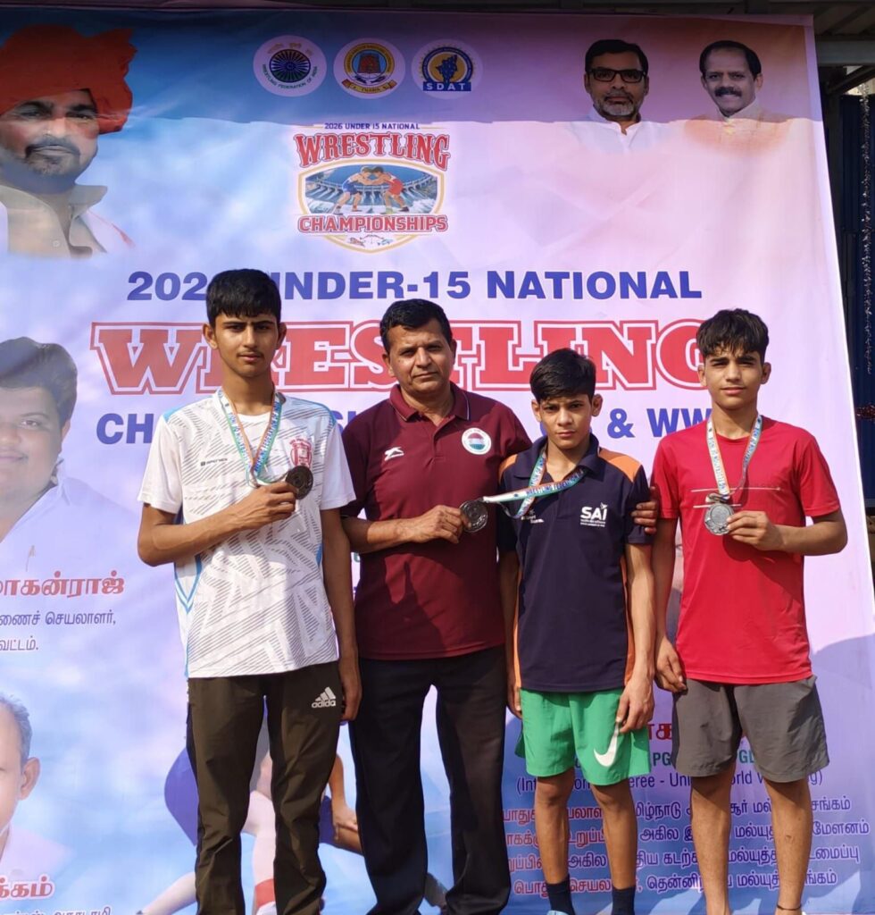 2 फरवरी 2026 बीकानेर/बीकानेर जिला कुश्ती संघ के पहलवान जगन पूनीयां ने बताया कि अंडर 15 नेशनल कुश्ती प्रतियोगिता में बीकानेर पहलवान आशीष चौधरी, हरीश सिहाग एवं भागीरथ ने कांस्य पदक जीतकर बीकानेर को गौरवान्वित किया है। बीकानेर जिला कुश्ती संघ के कमल कल्ला,अरुण कुमार पांडे, जसवेंद्र सिंह, सुशील कुमार डूड्डी,लक्ष्मण,प्रदीप स्वामी,छोटू,राजेंद्र सिंह राठौड़ एवं पूर्व पहलवान महावीर कुमार सहदेव ने खुशी प्रकट करते हुए दोनों ही कांस्य पदक विजेता पहलवानों व पहलवानों के परिजनों को बधाई शुभकामनाएं दी। तीनों ही पहलवानों के नेशनल में कांस्य पदक मिलने पर वरिष्ठ कोच पहलवान जगन पूनियां ने कहा कि होली के इस पावन पर्व पर आज दोगुनी खुशी है जो इन पहलवानों ने दी है। आगामी कार्यक्रमों में तीनों ही पहलवानों का जिला कुश्ती संघ की ओर से सम्मान किया जाएगा। इस अवसर पर पूर्व पहलवान महावीर कुमार सहदेव ने कहा कि बीकानेर जिला कुश्ती संघ का पूरा प्रयास है कि ज्यादा से ज्यादा बच्चे ओलंपिक पद्धति की कुश्ती में तैयार हो और इसी तैयारी के देखते हुए इन तीन बाल पहलवानों ने आज पूरे भारतवर्ष में बीकानेर का नाम रोशन किया है। आगामी महीनों में और भी पहलवान बीकानेर का कुश्ती के क्षेत्र में नाम करेंगे।