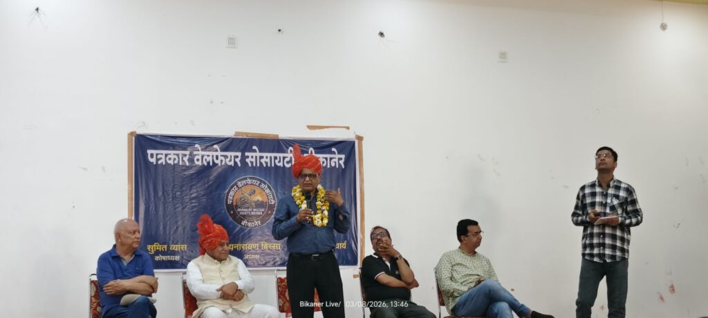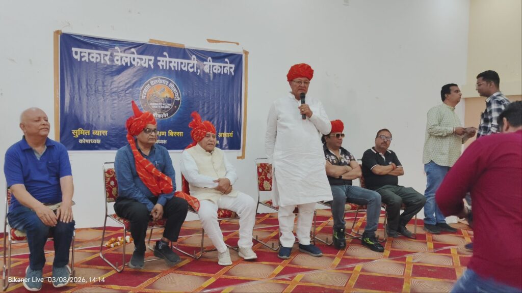बीकानेर। पत्रकार वेलफेयर सोसायटी की ओर से शहर के हरि हेरिटेज में पत्रकार होली स्नेह मिलन समारोह और पत्रकार सम्मान समारोह का आयोजन किया गया। कार्यक्रम में शहर के 21 पत्रकारों को सम्मानित किया गया जिनमें पांच महिला पत्रकार भी शामिल रहीं। समारोह में बड़ी संख्या में पत्रकार, सामाजिक कार्यकर्ता और गणमान्य नागरिक मौजूद रहे।