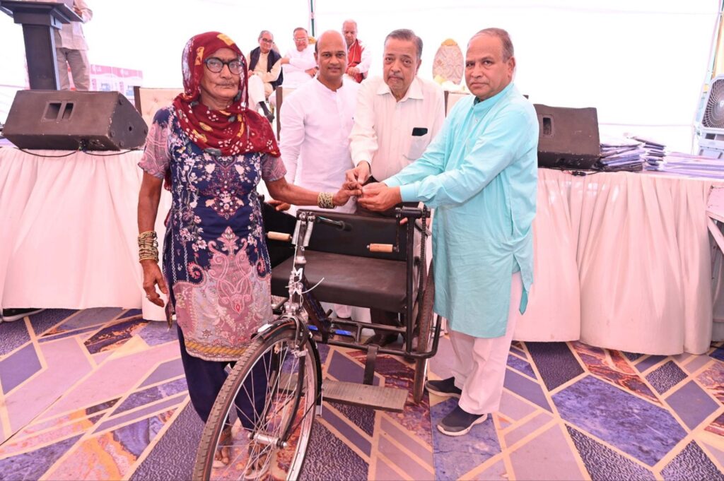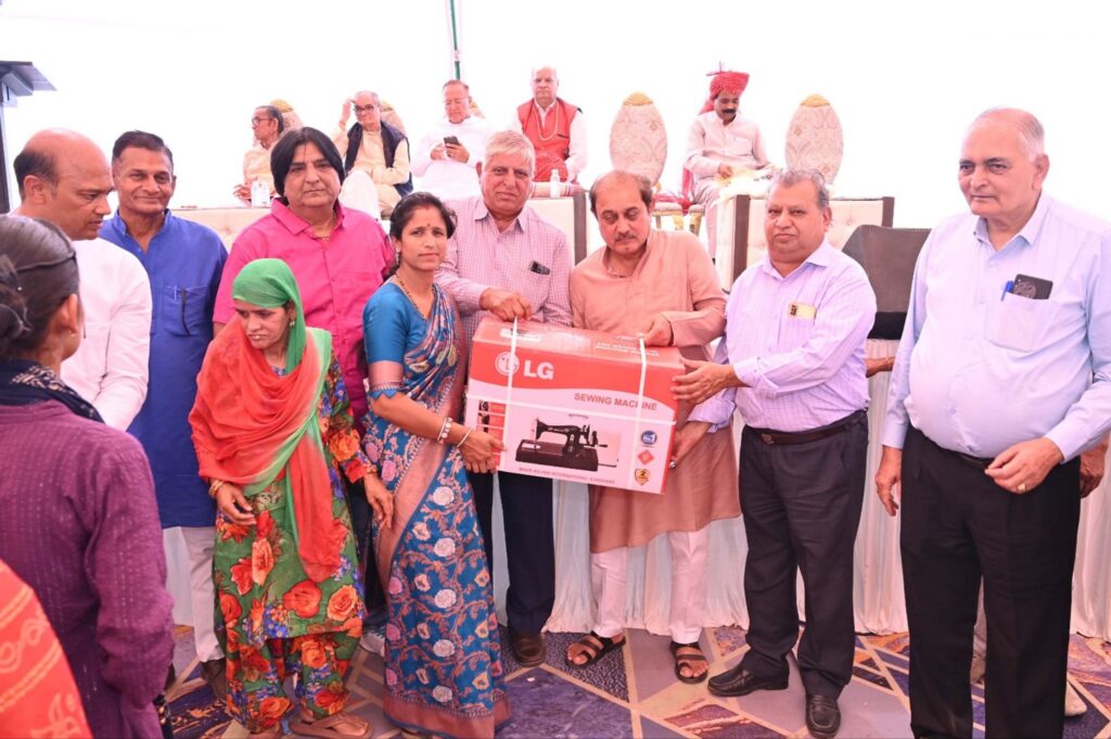 एक ट्राइसाइकिल, 11 महिलाओं को सिलाई मशीनें व 3४ बच्चों को विद्यालय पौशाक वितरित की गई
