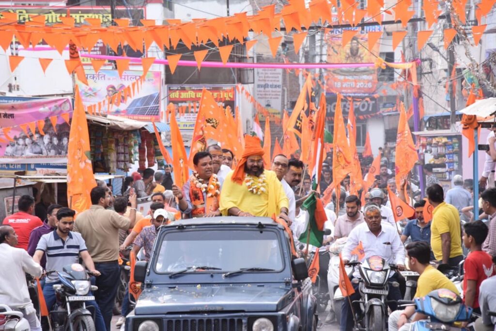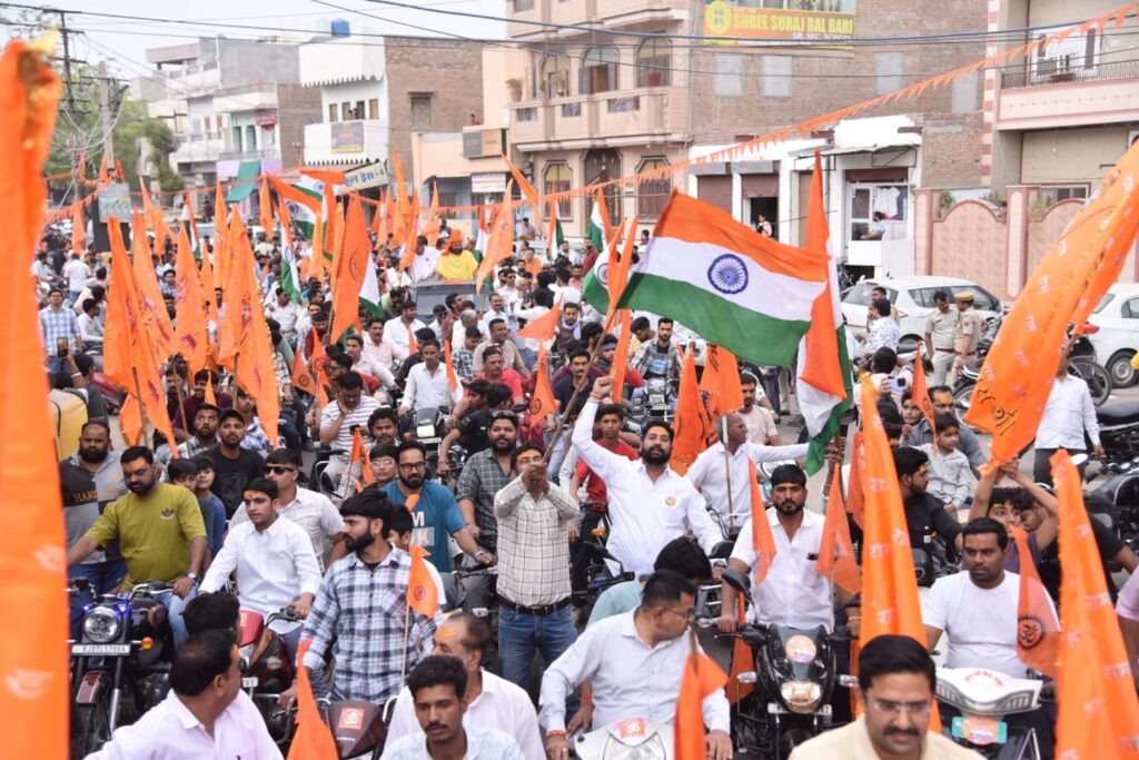 वाहन रैली निकाल कर हजारों लोगों ने धर्मयात्रा का दिया निमंत्रण, पुष्पवर्षा से हुआ स्वागत