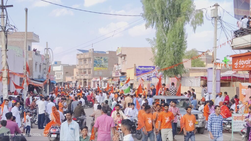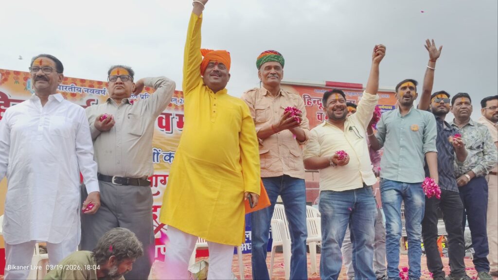बीकानेरा शहर में भारतीय नव वर्ष समारोह समिति के बैनर तले हिन्दू नववर्ष का आयोजन किया गया। एम एम ग्राउंड से रवाना हुई धर्मात्रा एमएम रवाना होकर नयाशहर थाने के आगे होते हुए गोकूल सर्किल, नत्थूसर बास होते परकोटे के अंदर सहर के अंदर से होते हुए कोट गेट पहुंची। यात्रा पर हेलिकॉप्टर से फूलों की बरसा की गयी देर शाम को जूनागढ़ पहुंची जहां साधु संतों के द्वारा महाआरती का नायोजन किया गया। पुलिस पूरी तरह से मुस्तैद धर्म यात्रा में हमेशा की तरह पुरुषों के साथ-साथ महिलाओं की भागीदारी अधिक देखी गई। धर्म यात्रा का जगह-जगह भव्य स्वागत हुआ इस बार यात्रा में कुछ नवाचार किए गए जो की सभी को बहुत पसंद आए।