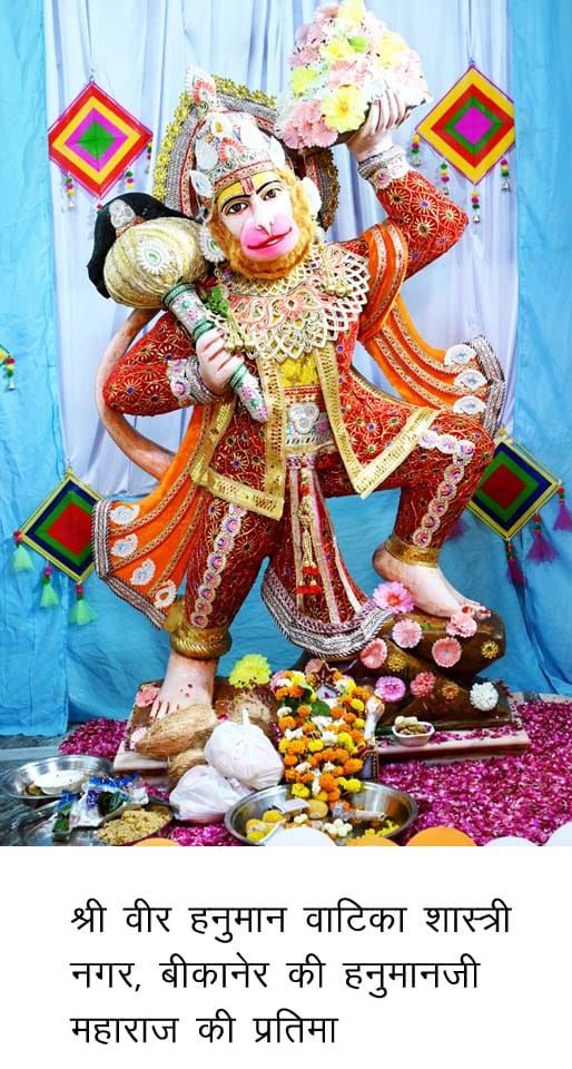 उन्होंने बताया कि मंदिर के पुजारी पंडित आसाराम ओझा के नेतृत्व में शास्त्री नगर, ड्यूप्लेक्स कॉलोनी, पवनपुरी आदि स्थानों के वाशिंदों की सक्रिय भागीदारी से नवरात्रि व रामनवमी पर वीर हनुमान जी महाराज की सौम्य, चमत्मकारी प्रतिमा पर सिन्दूर से अभिषेक, श्रृंगार, हनुमान चालीसा, सुन्दरकांड तथा दुर्गा शप्त शती का पाठ किया गया। उन्होंने बताया कि एक अप्रेल बुधवार को सुबह सात बजे आरती, सुबह साढ़े आठ बजे अभिषेक, शाम चार बजे से सात बजे तक सुन्दरकांड का पाठ, शाम साढ़े सात बजे आरती, उसके बाद सवामणी का भोग लगाया जाएगा तथा प्रसाद वितरण किया जाएगा। उन्होंने बताया कि 2 अप्रेल को शाम सात बजे हनुमानजी की मूर्ति का श्रृंगार व भव्य आरती तथा उसके बाद हिन्दुस्तान की लोकप्रिय कलाकारों की ओर से शाम सात बजे भजन संध्या प्रस्तुत की जाएगी।