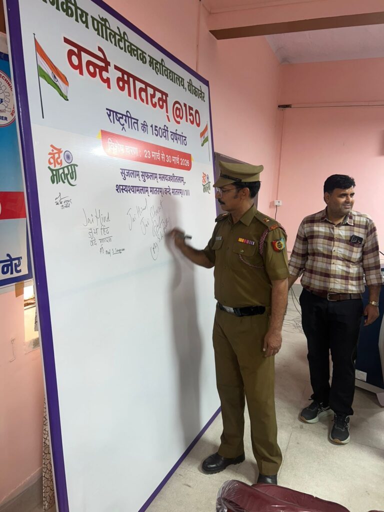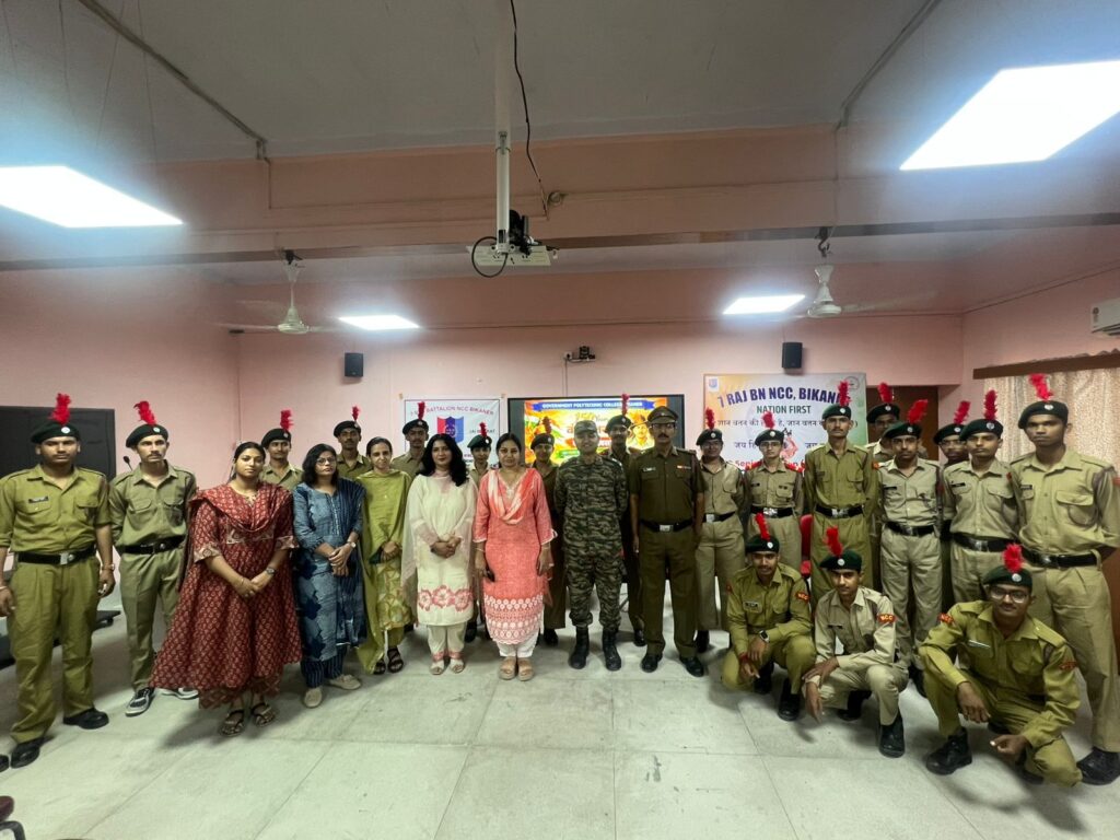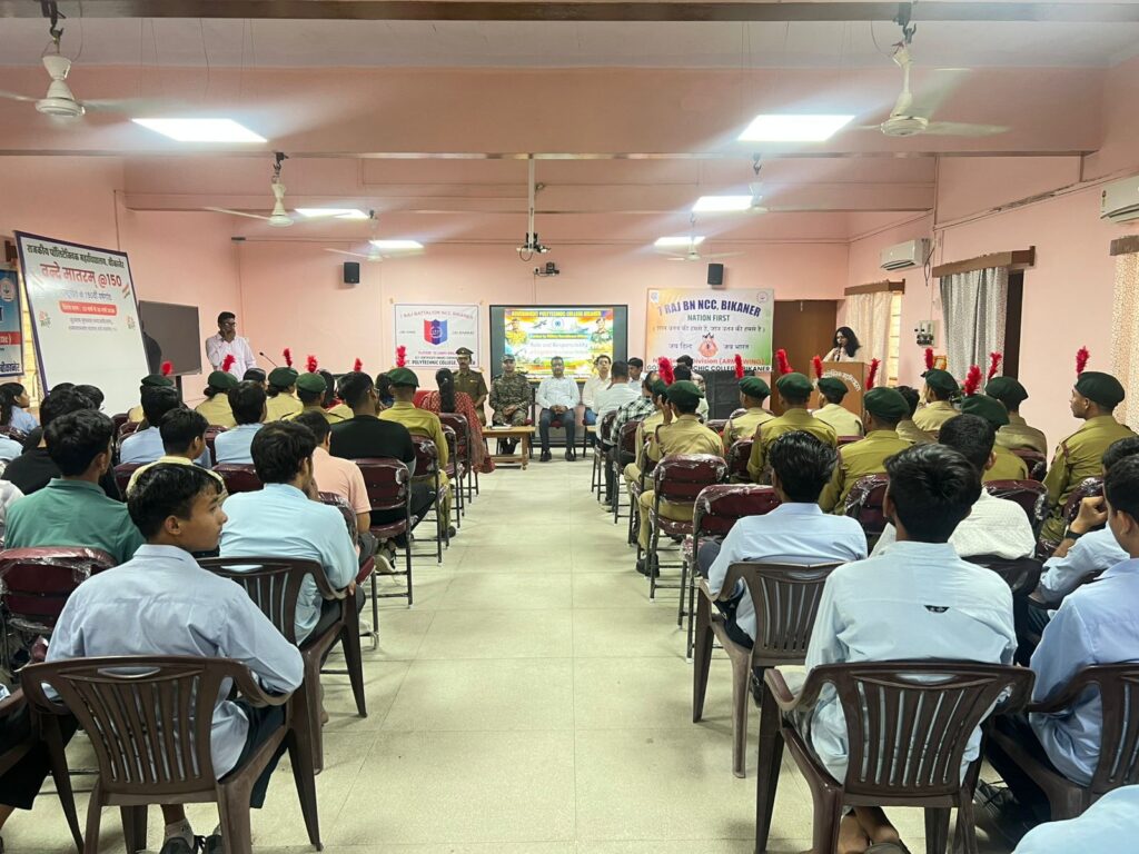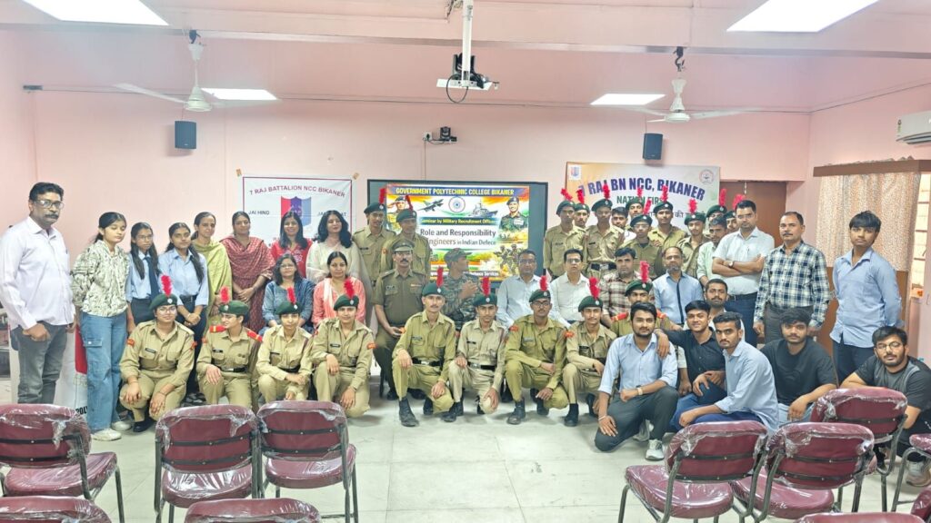 बीकानेर, राजकीय पॉलिटेक्निक महाविद्यालय में एनसीसी इकाई के तत्वावधान में ‘भारतीय सेना में इंजीनियर की भूमिका’ विषय पर विशेष व्याख्यान आयोजित किया गया। कार्यक्रम की शुरुआत माँ सरस्वती के चित्र पर दीप प्रज्ज्वल व पुष्पांजलि तथा सामूहिक रूप से राष्ट्रगीत वन्देमातरम का गायन के साथ हुई। एनसीसी प्रभारी मेजर एस. एल. राठी ने बताया कि इस व्याख्यान में मुख्य वक्ता मेजर एस. संग्राम, भर्ती चिकित्सा अधिकारी, सेना भर्ती कार्यालय (एआरओ), झुंझुनू थे जिनका प्राचार्य श्री के के सुथार ने माला पहनाकर व पौधा भेंट कर स्वागत किया।