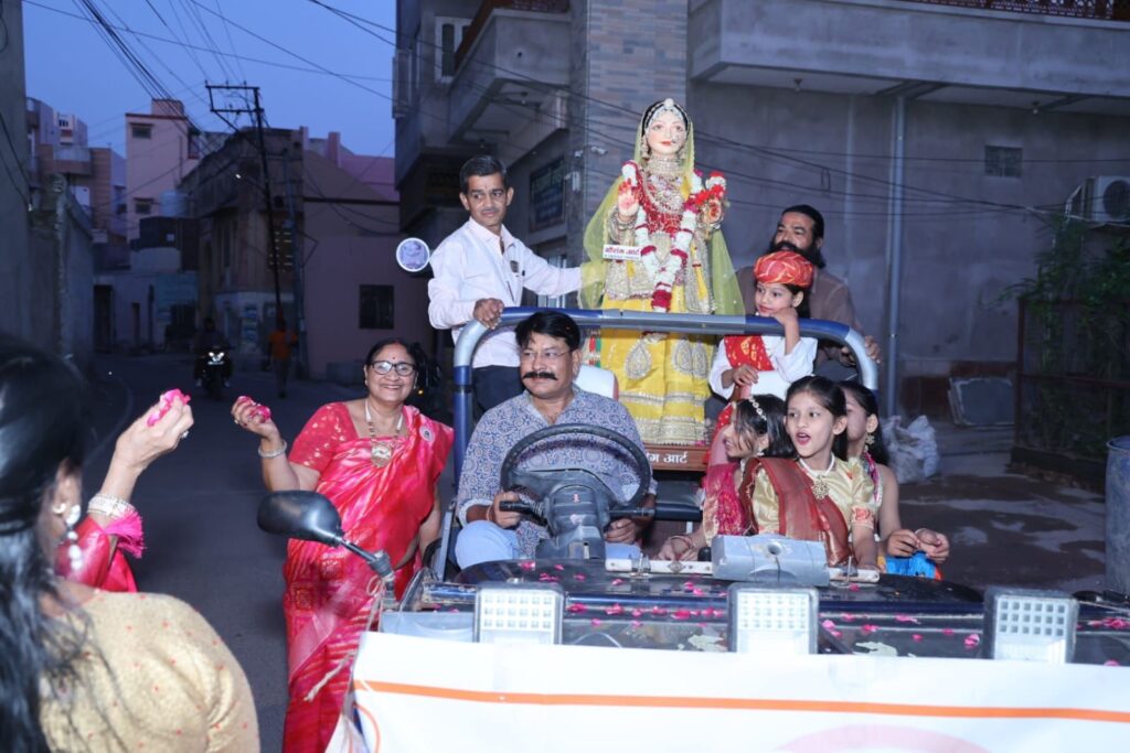 महिला समिति उपाध्यक्ष अंजू लोहिया तथा माया चांडक द्वारा प्राप्त जाानकारी के अनुसार गणगौर उत्सव कार्यक्रम का शुभारंभ सर्वप्रथम माँ गणगौर की सवारी के साथ प्रारम्भ हुआ, जिसमें माँ गवरजा की सवारी डागा चैक, बी.के. स्कूल से ढोल एवं ताशों की धुन के साथ विभिन्न माहेश्वरी मौहल्लों से होते हुए स्थानीय नृसिंह भवन पहुंची। समिति की कोषाध्यक्ष सीमा चांडक ने बताया कि माँ गवरजा की सवारी के साथ-साथ जहाँ एक ओर महिला समिति की सभी सदस्याऐं एक जैसी साड़ियाँ पहने हुए आकर्षण का केन्द्र बन रही थी वहीं अपने हाथों में डांडियाँ लिए माँ गवरजा के आगे-आगे घूमर नृत्य कर रही थी।