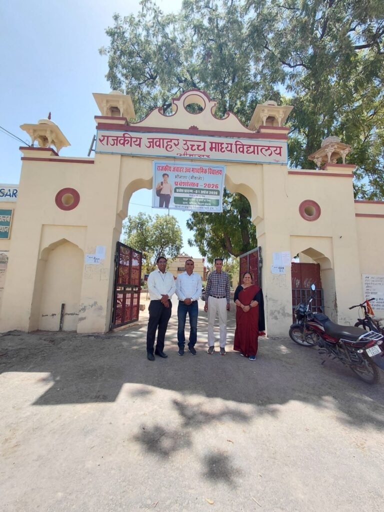 बीकानेर/भीनासर,9अप्रेल। राजकीय जवाहर उच्च माध्यमिक विद्यालय, भीनासर में नवीन शैक्षणिक सत्र के प्रारंभ होने पर ‘प्रवेश उत्सव’ कार्यक्रम अत्यंत उत्साह और हर्षोल्लास के साथ संपन्न हुआ। कार्यक्रम के दौरान विद्यालय परिसर को विशेष रूप से सजाया गया और नव-प्रवेशित विद्यार्थियों का तिलक लगाकर व मिठाई खिलाकर आत्मीय अभिनंदन किया गया। इस अवसर पर विद्यालय की बड़ी उपलब्धि पर चर्चा करते हुए बताया गया कि इस वर्ष विद्यालय का बोर्ड परीक्षा परिणाम शत-प्रतिशत रहा है, जो शिक्षकों के समर्पण और विद्यार्थियों के कठिन परिश्रम का प्रमाण है।