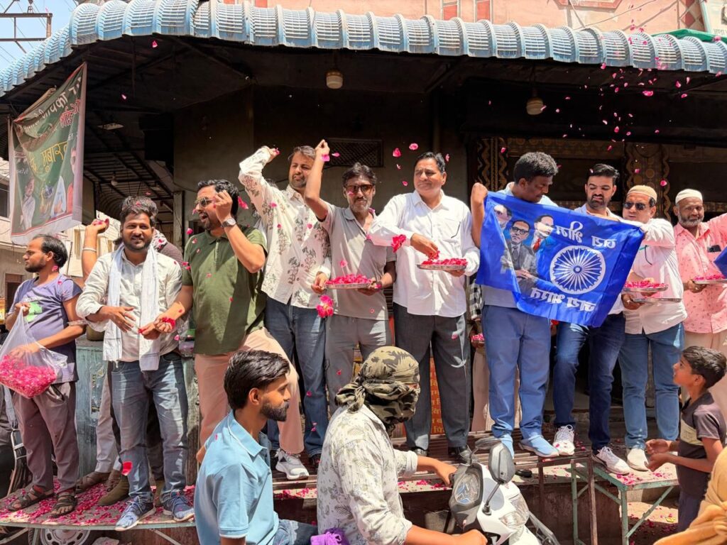 डॉ.भीमराव अम्बेडकर की जयंती के अवसर पर संविधान यात्रा महारैली का पूर्व महापौर हाजी मक़सूद अहमद के नेतृत्व मे मुस्लिम समुदाय द्वारा कसाईयो की बारी मे पुष्प वर्षा कर स्वागत किया गया
