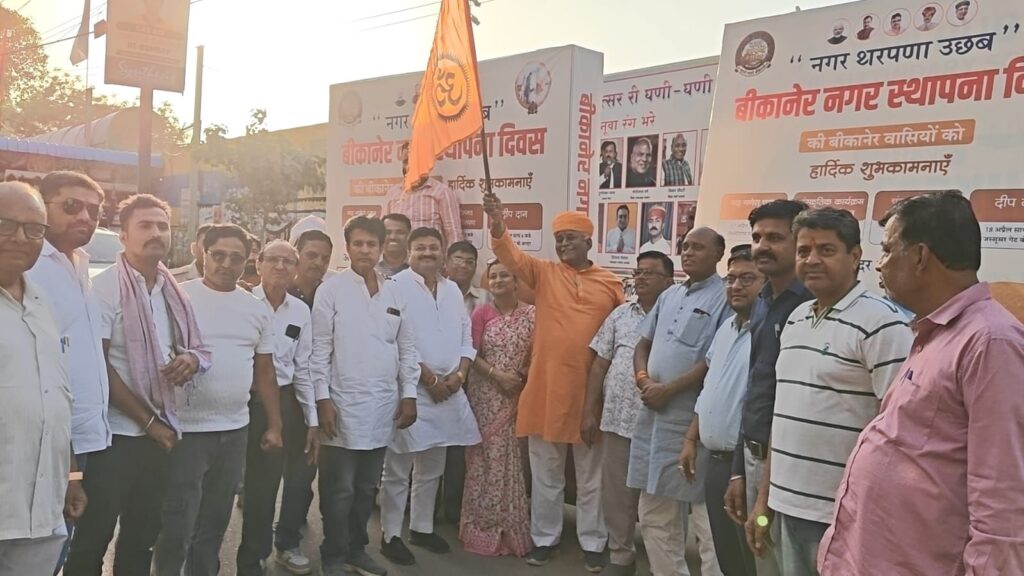 बीकानेर। बीकानेर पश्चिम विधायक श्री जेठानंद व्यास ने बीकानेर के 539वें स्थापना दिवस के उपलक्ष्य में आयोजित होने वाले “नगर थरपणा उत्सव” के प्रचार-प्रसार की शुरुआत करते हुए दो प्रचार रथों को हरी झंडी दिखाकर रवाना किया। इस अवसर पर उन्होंने कार्यक्रम से जुड़े पोस्टर का विमोचन भी किया।