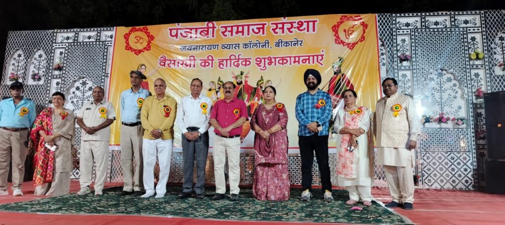 पंजाबी समाज संस्था, जयनारायण व्यास कॉलोनी द्वारा वैसाखी का पावन पर्व बड़े ही उत्साह, उल्लास एवं पारंपरिक रंगों के साथ मनाया गया। कार्यक्रम में समाज के सदस्यों सहित बड़ी संख्या में महिलाओं, युवाओं एवं बच्चों की सक्रिय भागीदारी रही।