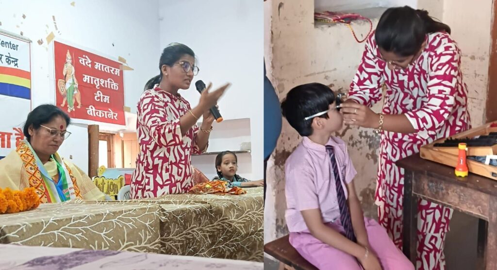 शिविर में गुजरात (अहमदाबाद एवं पालीताना) से पधारीं नेत्र विशेषज्ञ डॉ. श्रद्धा जैन कोचर एवं बीकानेर के वरिष्ठ चिकित्सक डॉ. गजेंद्र वर्मा ने अपनी सेवाएं प्रदान कीं। इस दौरान लगभग डेढ़ सौ बच्चों एवं अन्य नागरिकों की नेत्र एवं स्वास्थ्य जांच की गई। नेत्र जांच के साथ-साथ बच्चों में सिरदर्द (हेडेक) संबंधी समस्याओं का भी उपचार किया गया।
