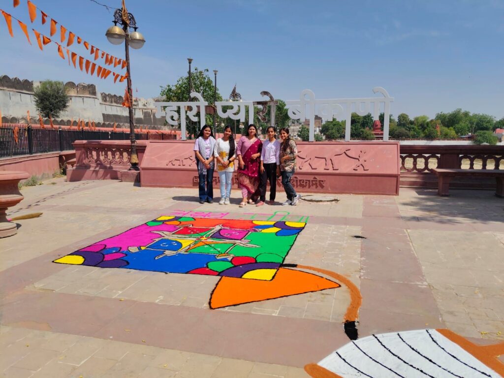 यह रंगोली न केवल कला का उत्कृष्ट उदाहरण थी, बल्कि इसमें “**म्हारो गौरव बीकानेर, मारो प्यारो बीकाणो**” की भावना भी झलक रही थी। उपस्थित लोगों ने दोनों बेटियों के प्रयास की सराहना की और उनके उज्ज्वल भविष्य की कामना की।