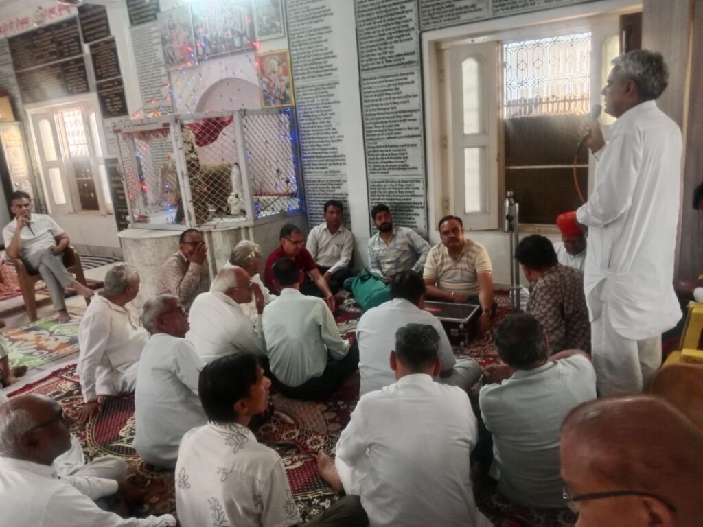 नोखा। देशव्यापी आहवान पर पूरे देश में 27 अप्रेल 2026 को गौ सम्मान आहवान अभियान के तहत नोखा की गंगा गौशाला में गौशाला कार्यकारिणी के उपाध्यक्ष बनवारीलाल डेलू की अध्यक्षता में बैठक हुई जिसमें कार्यकारिणी व गौशाला की सत्संग मंडली के अनेको नर नारी गौभक्त उपस्थित रहे। बनवारीलाल डेलू, वासूदेव तिवाड़ी सहित वक्ताओं और श्री गंगा गौशाला कार्यकारिणी ने कहा कि भारतीय संस्कृति में जिस गाय को “माँ” की संज्ञा दी गई है उस गौमाता की हत्या हो रही है और उसे कोई सम्मान नहीं मिल रहा है। हमारे सनातन धर्म में गौमाता में 33 कोटी देवी देवताओं का निवास माना गया है। लेकिन वर्तमान में राज्यों व देश में गौ माता दुःखी हैं । राजस्थान हाई कोर्ट व हैदराबाद हाई कोर्ट द्वारा गाय का राष्ट्रीय पशु घोषित करने व गौवध पूर्णतः बन्द करने व गौ वध करने वालों को आजीवन कारावास की सजा की सिफारिस के बावजूद केन्द्र व राज्य सरकारों द्वारा कार्य वाही नहीं की जा रही है। इस गूंगी बहरी सरकारों को कुंभकरणी नींद से जगाने के लिए अब देश भर में साधू संतो व आम लोगो को संघर्ष के लिए सड़को पर उतरने के लिए बाध्य होना पड़ रहा। प्रथम चरण में पूरे देश भर सभी तहसीलों द्वारा राष्ट्रपति, प्रधानमंत्री, राज्यपाल, और मुख्य मंत्रीयों के नाम ज्ञापन दिये जायेंगे। नोखा में 27 अप्रैल 2026 सोमवार को लाहोटी चौक से प्रातः 11 बजे विशाल रेली के रूप में सकिर्तन करते हुए उपखण्ड अधिकारी कार्यालय पहुँचकर ज्ञापन दिया जाएगा । गौशाला समिति व साधू-संतों ने आमजन से अधिकाधिक संख्या में पहुंचने की अपील की ।