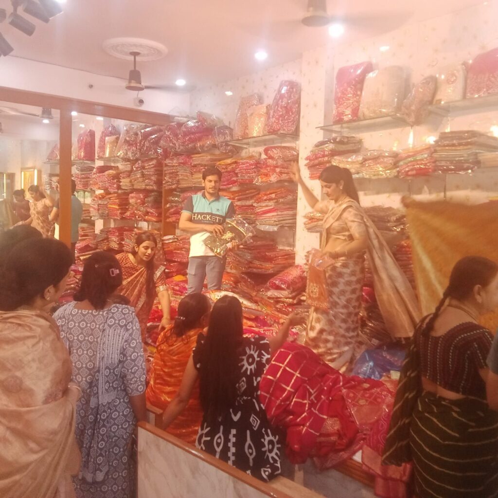 प्रतिष्ठान की संचालक मैढ़ क्षत्रिय स्वर्णकार कड़ेल महिला समूह की श्रीमती पुष्पा, शर्मिला,नेहा, प्रिया, जागृति, ऋतु, वर्षा व पूजा के साथ सुरेश, शरद, भारत, श्री श्याम व गोविंद ने देवी देवताओं का पूजन करवाया तथा सभी अतिथियों व ग्राहकों का सत्कार, अभिनंदन किया। श्रीमती पुष्पा व नेहा ने बताया कि सभी अतिथियों व ग्राहकों को तुलसी का पौधा व राधा कृष्ण की शुद्ध चांदी की प्रतिमा का फ्रेम प्रदान किया गया। उन्होंने बताया कि बीकानेर में यह अपने आप में पहला साड़ी, लेहंगा व सूट का शो रूम है जिसमें देश के विभिन्न प्रदेशों की प्रसिद्ध व प्रचलित साड़ियां वाजिब मूल्य पर प्रदान की जाएगी। इसमें बनारस, कोलकाता, सूरत आदि स्थानों की प्रमुख है। रोजमर्रा उपयोग के साथ शादी, सगाई व अन्य मांगलिक कार्यों के लिए हस्तशिल्प की अनूठी साडियां , लेहंगा व सूट उपलब्ध है। प्रतिष्ठान के सुरेश व शरद कडेल सोनी ने बताया कि मांगलिक कार्यों में सोने, चांदी, हरी-मोती तथा कुंदन ज्वैलरी के साथ अब नूतन फैशन आकर्षक रंगों व डिजाइनों के साड़ी व सूट मिलने से महिला ग्राहकों को अधिक मन पसंद को पूरा करने का मौका मिलेगा।