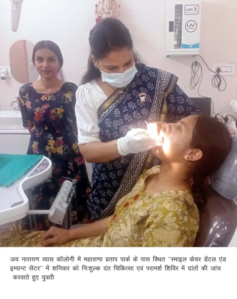 बीकानेर, 25 अप्रैल। जयनारायण व्यास कॉलोनी में महाराणा प्रताप पार्क के पास ’’स्माइल केयर डेंटल एंड इम्पान्ट implant सेंटर’’ में शनिवार को निःशुल्क दंत चिकित्सा एवं परामर्श शिविर आयोजित किया गया। शिविर में बच्चों व युवतियों के साथ वृद्ध महिलाओं की संख्या अधिक थी। अधिकतर रोगी दांत में कीड़ा लगने, चीस चलने तथा दांतों के असहनीय दर्द के रोगी शामिल थे। सभी रोगियों की जांच व परामर्श दंत रोग विशेषज्ञ डॉ.सोनम राय व डॉ.अविशा मिढ्ढा ने दिया। सभी के दांतों का एक्सरे किया गया तथा जरूरतमंद रोगियों को दवा,टूथ पेस्ट व ब्रुश निःशुल्क प्रदान किया गया। उदासर की युवती मुस्कान मेघवाल, पारीक चौक की सोनम, व वरिष्ठ नागरिक श्रीमती देवी मिढ्ढा सहित सभी ने शिविर को उपयोगी व सार्थक बताया तथा दोनों दंत रोग विशेषज्ञ डॉ.सोनम राय व डॉ.अविशा मिढ्ढा के व्यवहार व सेवाओं की सराहना की।