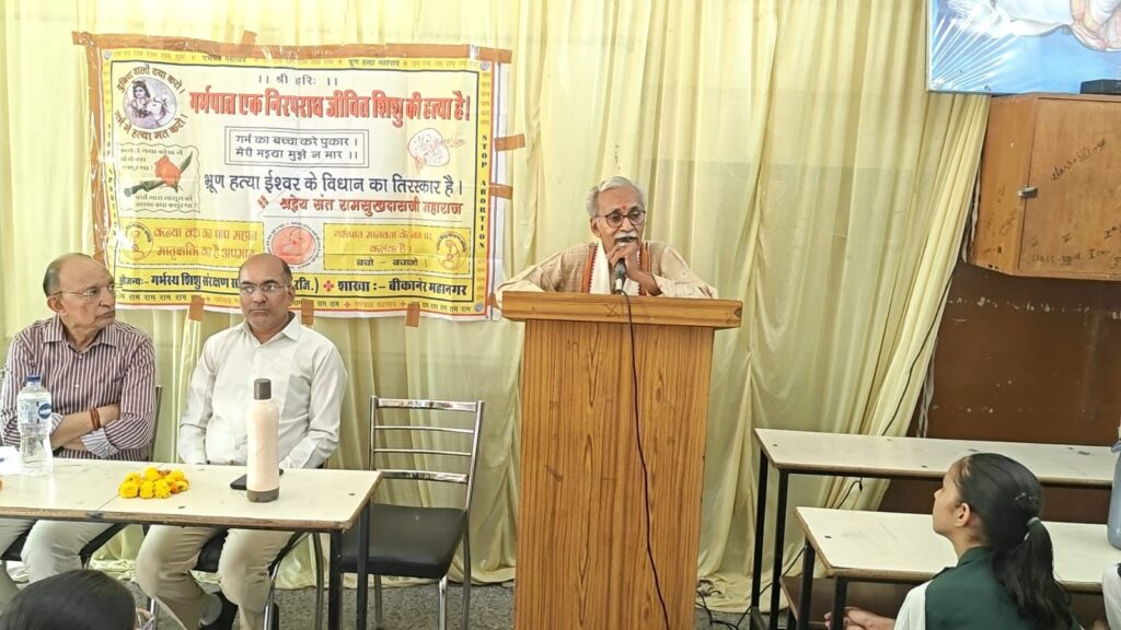 बीकानेर। शहर के व्यास पब्लिक स्कूल में गर्भस्थ शिशु संरक्षण समिति भारत के तत्वावधान में जन-जागरूकता सेमिनार का आयोजन किया गया। कार्यक्रम में प्रखर चिंतक डॉ. महेश शर्मा के आतिथ्य और समिति के राष्ट्रीय अध्यक्ष राम किशोर तिवाड़ी की अध्यक्षता में साइबर क्राइम टीम के सहयोग से विद्यार्थियों को महत्वपूर्ण सामाजिक एवं डिजिटल सुरक्षा विषयों पर जागरूक किया गया।