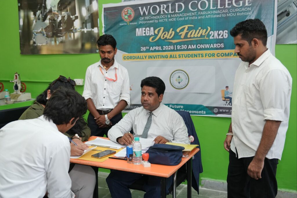 गुरुग्राम। शिक्षा के क्षेत्र में अपनी अलग पहचान बना चुके वर्ल्ड कॉलेज ऑफ़ टेक्नोलॉजी एंड मैनेजमेंट, फरुखनगर, गुरुग्राम के प्रांगण में मेगा जॉब फेयर-2026 का आयोजन में 116 कंपनियों ने भाग लिया।